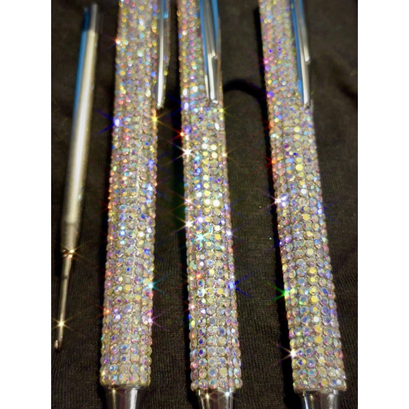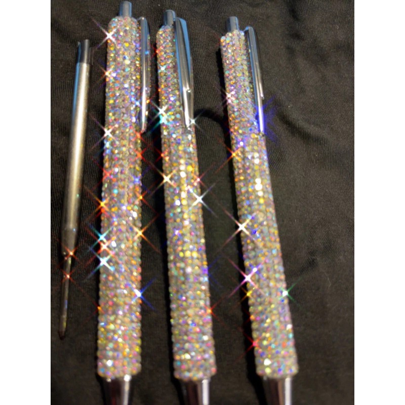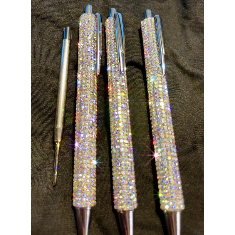 Unbranded 3 Pcs New AB Rhinestone Crystal Silver Ballpoint Pens Bling Black Ink Diamonds