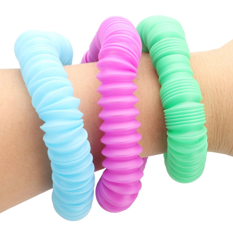 1. SPECIAL SOUND: When stretching or squeezing these tubes, they will make a special sound, and children will be attracted by the sound and and shape they make.