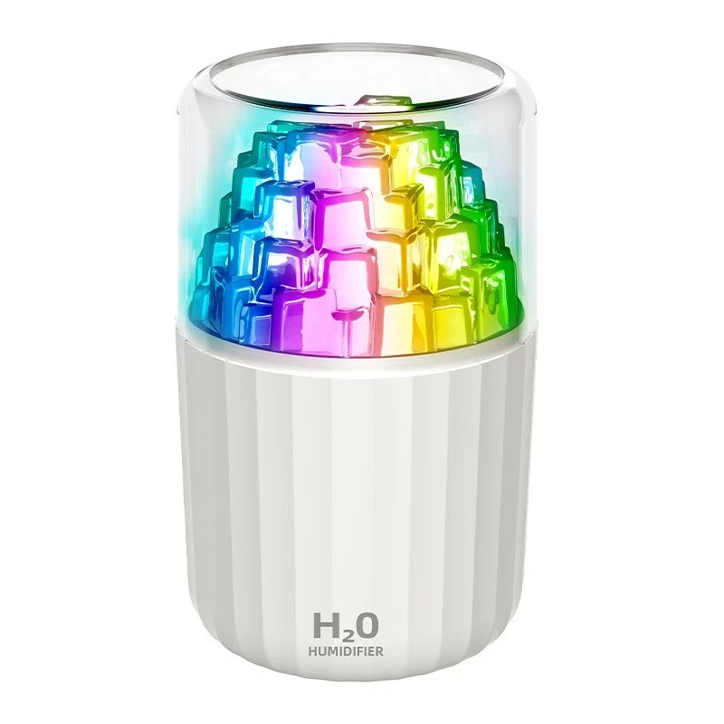 3D Colorful Mini Ice Cube Humidifier | Atmosphere with Colored Lights, Auto Shut-off When Water is Low|Suitable for Bedroom Office Desktop Car Use as a Home Decor Holiday Gift