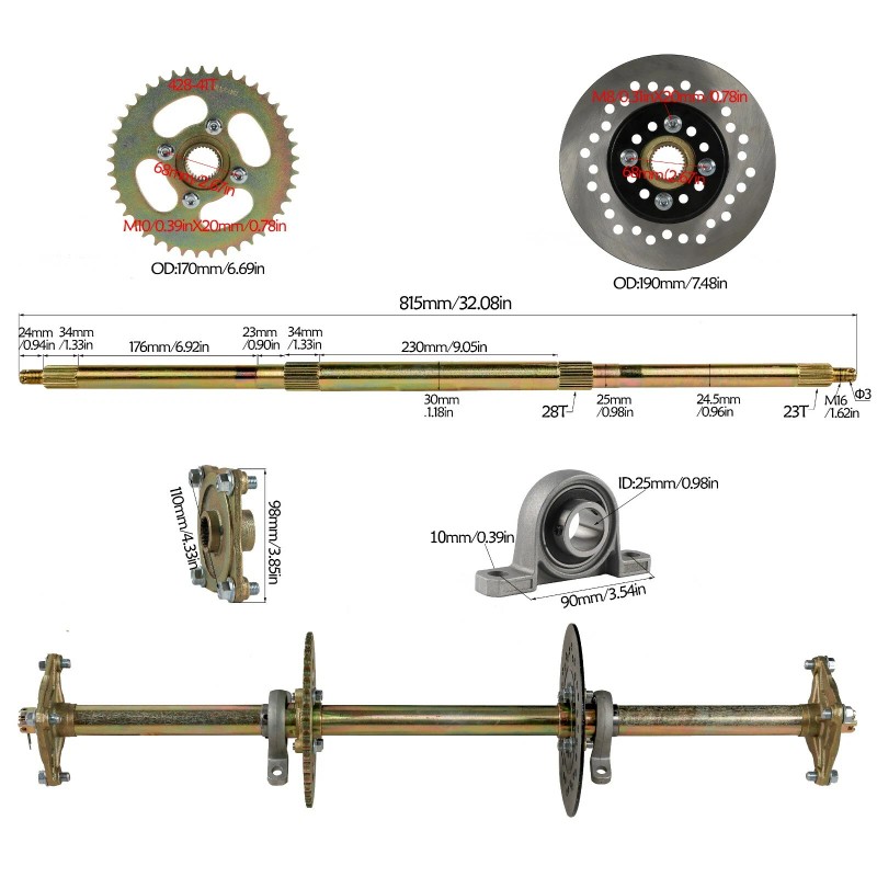 Unbranded 32" Go Kart Rear Axle Kit 428 Chain Sprocket Brake Hub Racing ATV E BIKE Drift