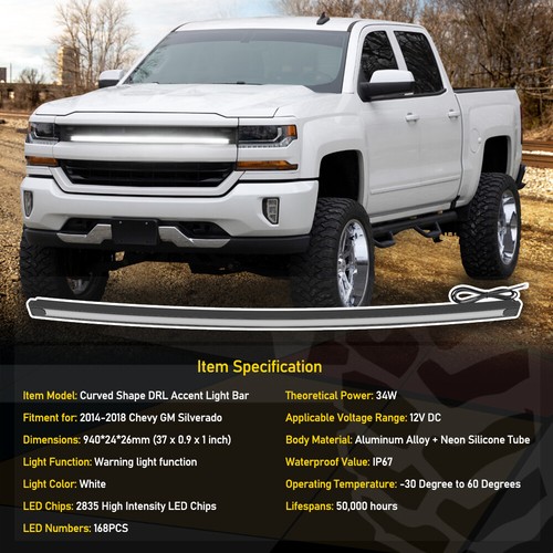 Unbranded 37" Front LED DRL Grill Accent Bar Light Kit For 2014-2018 Chevy GM Silverado