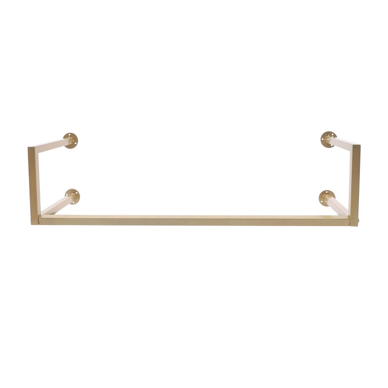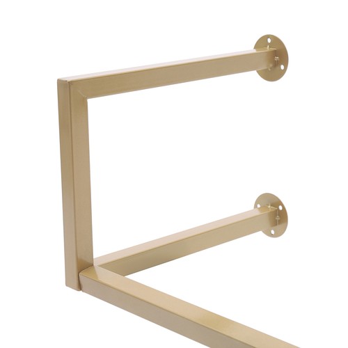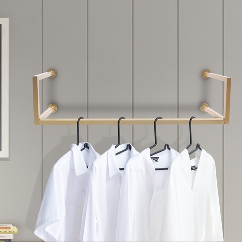 This gold wall-mounted clothing rack is suitable for home, retail, and commercial use. It is great for organizing and creating storage space in your laundry room, bedroom, or student dormitory.