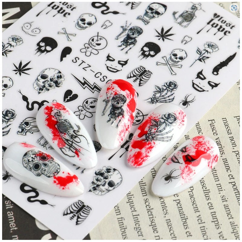 Unbranded 3D Skull Ghost Spider Web Skeleton Pattern Nail Art Thanksgiving Halloween NS38