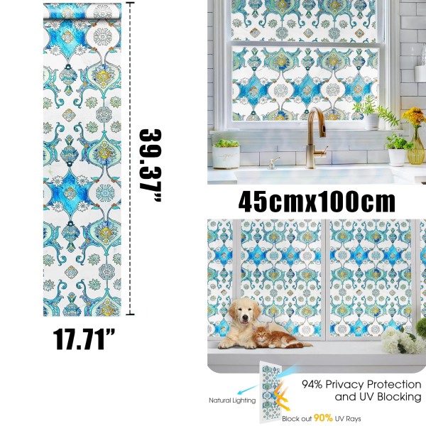 - Sun Light Rejection,100% High-Quality Material: Made of premium vinyl material without any harmful chemical smell, the decorative window film can protect you from 90% UVA rays and UVB rays, and withstand heat and steam for long-lasting use.