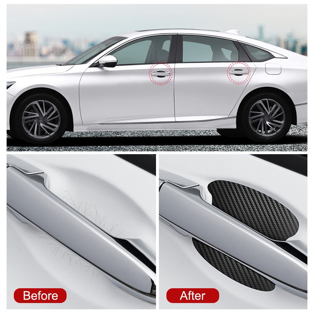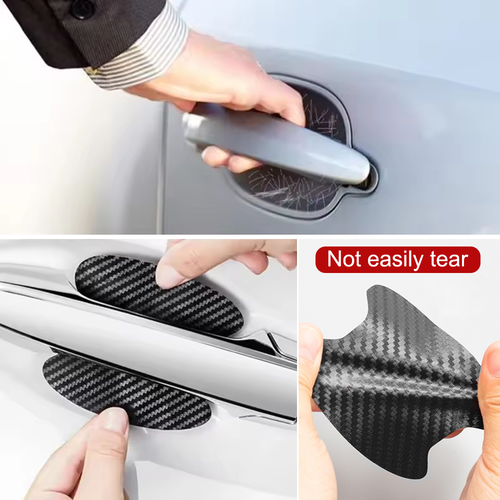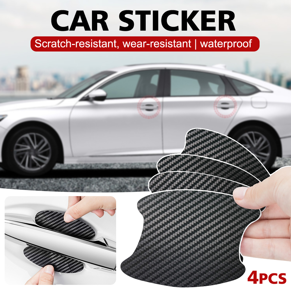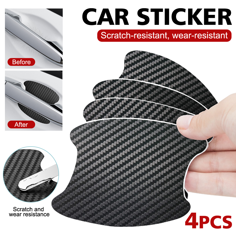 4x Carbon Fiber Stickers Car Accessories Door Handle Film Anti-Scratch Protector