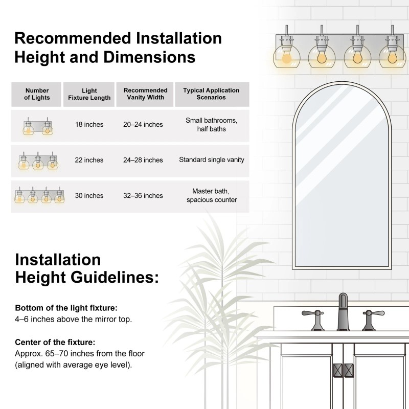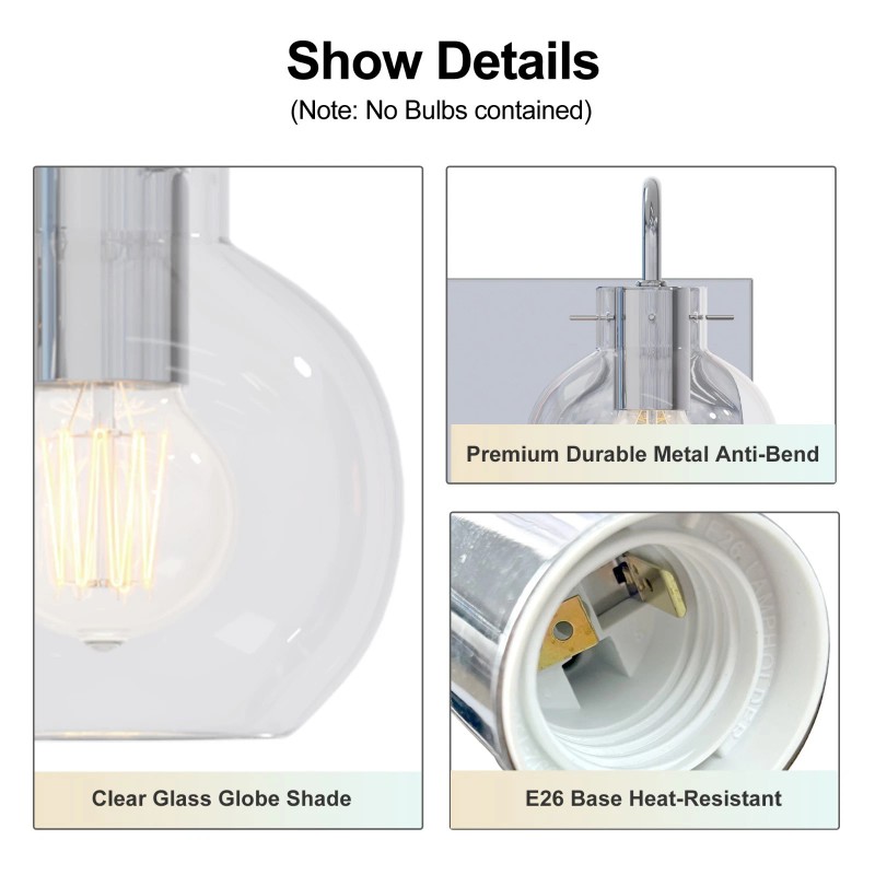 - Easy Installation & Adjustable Mounting Designed for quick DIY installation, this Vanity Lights with Clear Glass Shades includes all mounting hardware and can be installed facing up or down for customized lighting. Simply connect the wires, secure the glass shade, and insert bulbs (not included). Note: Inspect glass shade before installation for a flawless setup.