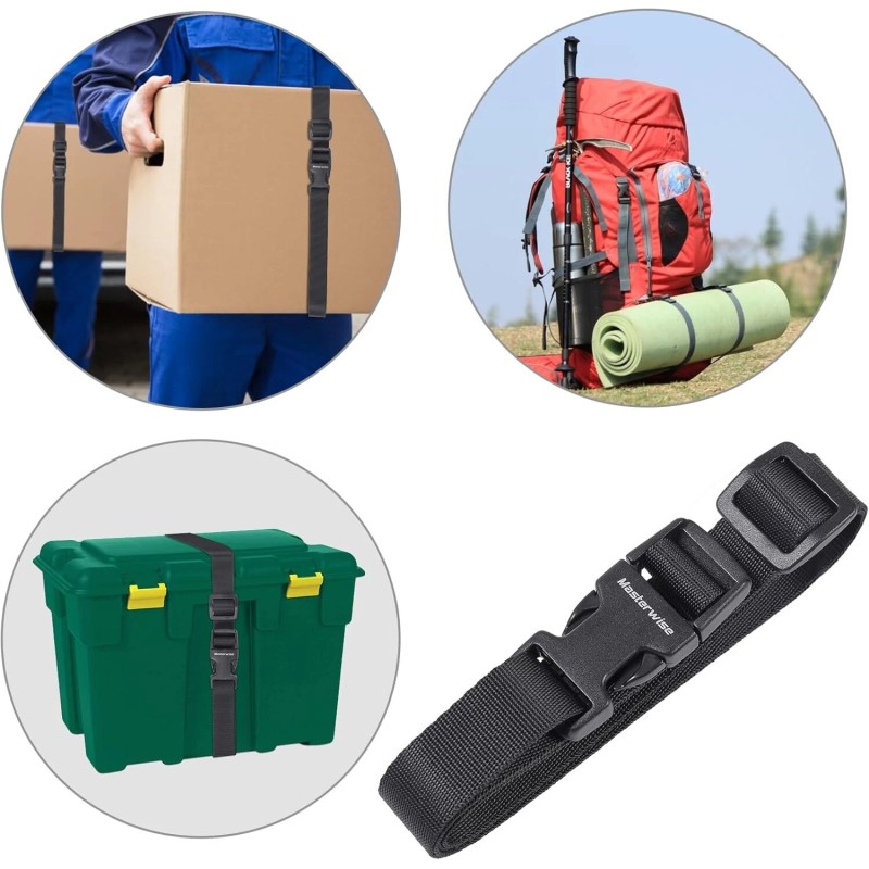 Unbranded 4 Pack Black Buckle Packing Straps with Clips, Adjustable Nylon Straps with Buck