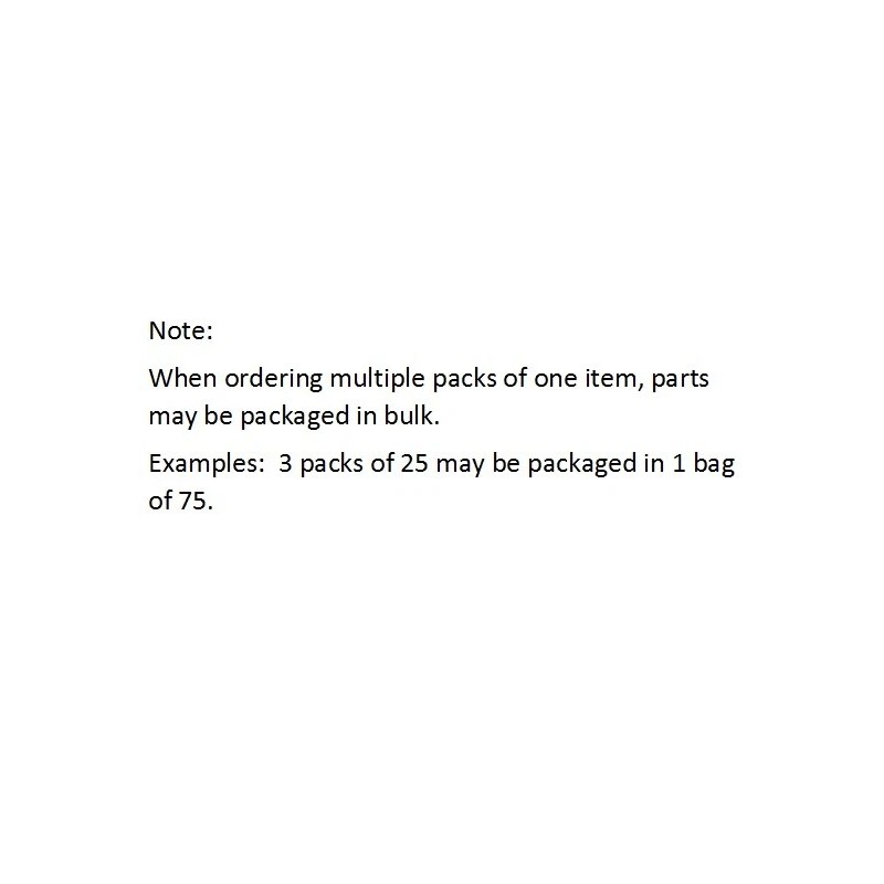 Note:  When ordering multiple packs of this item, we may package in bulk.  Example: 3 packs of 25 may be packaged in 1 bag of 75.