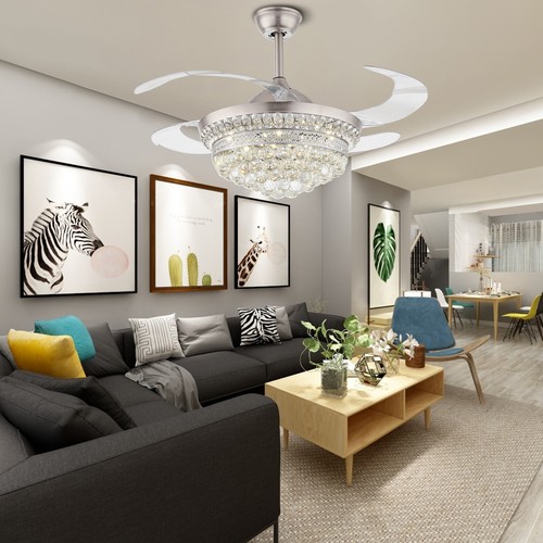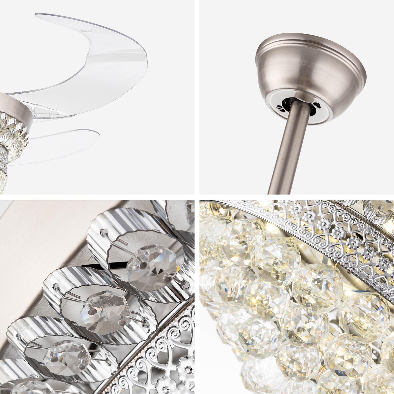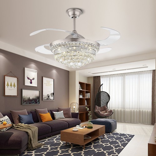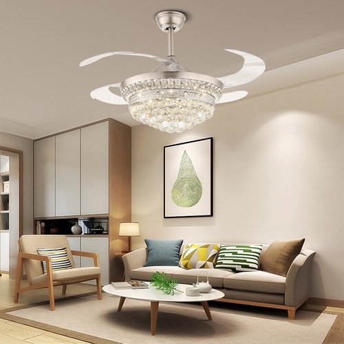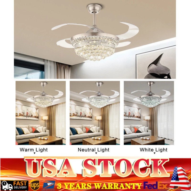 Unbranded 42 in Crystal Chandelier LED Ceiling Fan Light 3-Speed Pendant Lamp with Remote