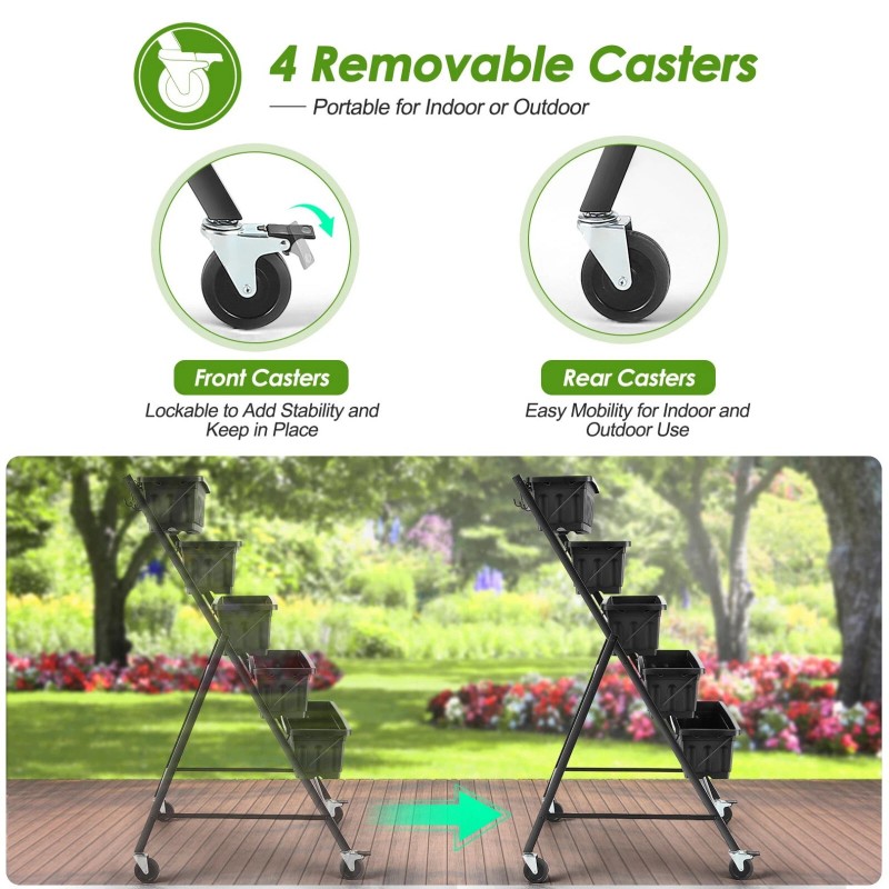 - 5-Bin vertical garden bed with 4 wheels is the ideal free-standing garden bed. Easily build your lush garden full of delicious vegetables, fresh herbs, blooming flowers, exotic succulents and more!