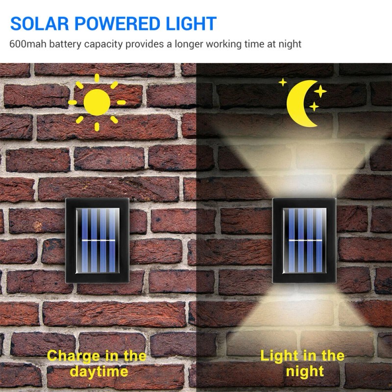 -Perfect garden decorative wall lamp, press the on / off button to turn on the outdoor solar lamp, so that the solar fence lamp can be recharged in unlimited free sunlight. It will automatically turn on at dusk or bad weather, and turn off at dawn