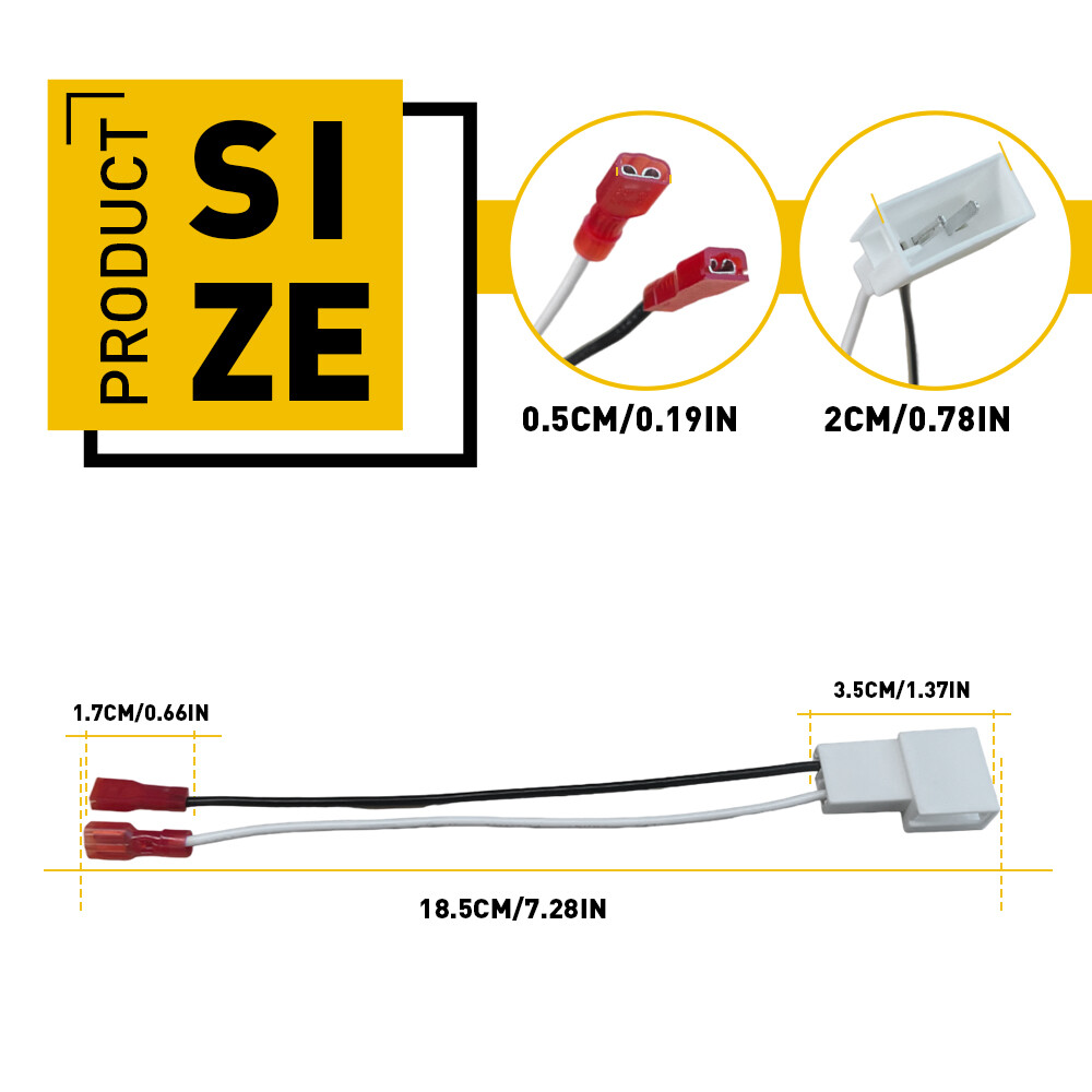 Features: *Easy Installation It can connects the factory speaker harness directly. Simple installation with direct replacement, cutting is not required. *Convenient, Fast and Time-saving This good adapter can help you to replace the broken speaker wire or DIY effective conductivity. *Superior Material Made of high quality copper and ABS material with insulating plastic pipe for its long service life. *Quality Test All products were tested for performance and to ensure the accurate parameter for your vehicle. *Warm Notice Please double-check the parameters and models in the description to guarantee it fits your vehicle before ordering.