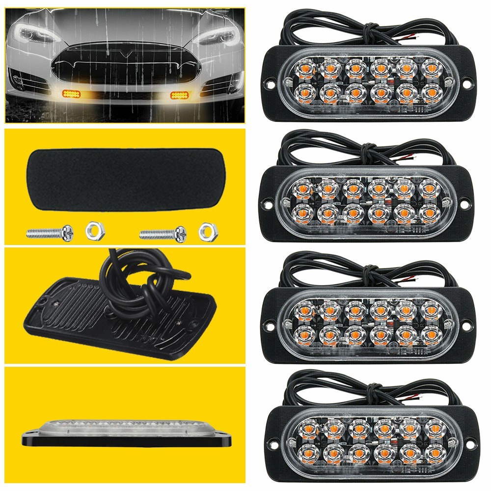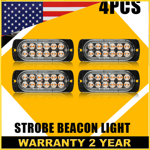 4x Amber LED 12 Strobe Light Truck Bar Hazard Beacon Flash Bright