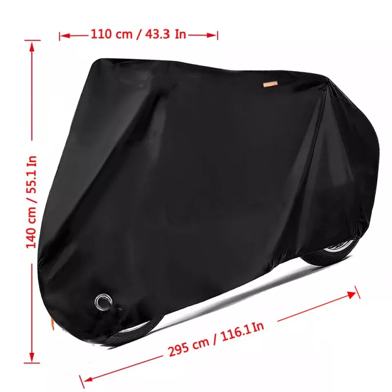 -Elasticated Hems in front and rear wheel, better design, prompting your precious motorbike and cover tightly fit together.