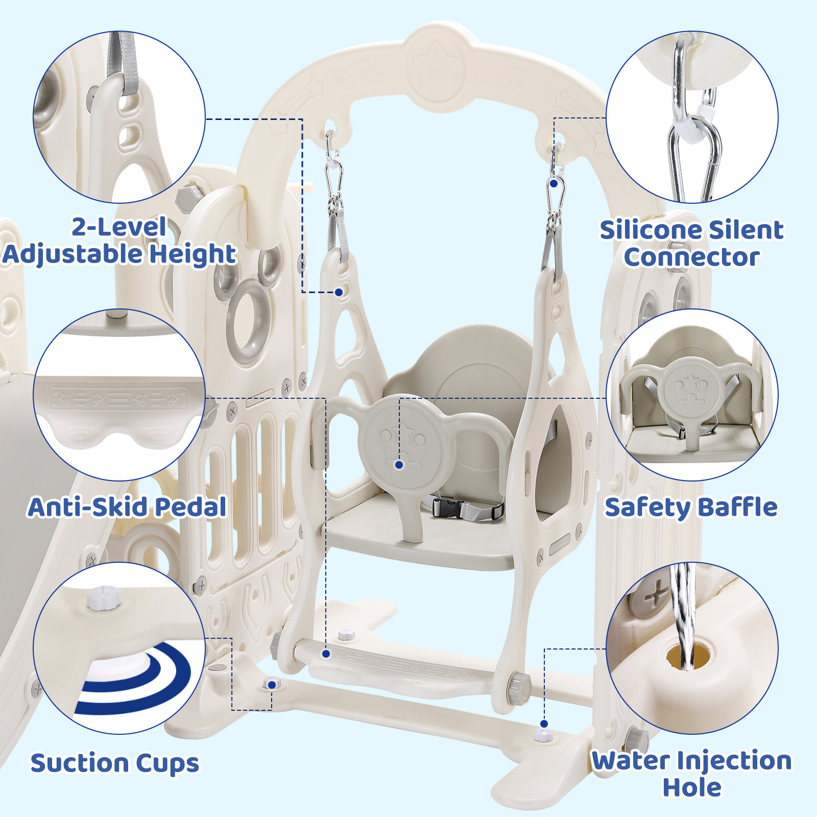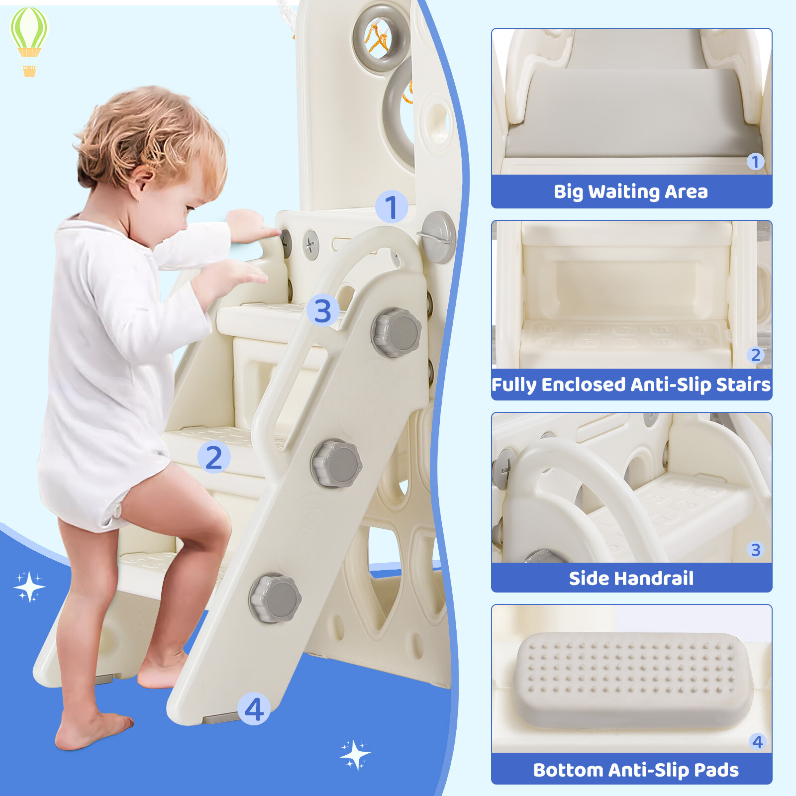 Swing Slide for Kids, 5 in 1 Slide Climber for Toddler, with Ball & Hoop, Storage Space, Suction Cup Reinforced Base, Indoor Outdoor Playground, for Boys Girls Birthday