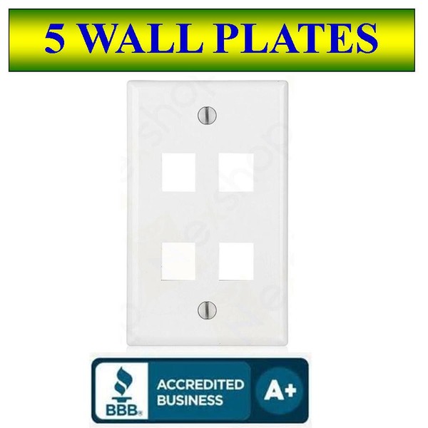 Unbranded 5 PACK Wall Plate 4 Port White Keystone Jack for RJ45 HDMI, USB, A/V Connectors