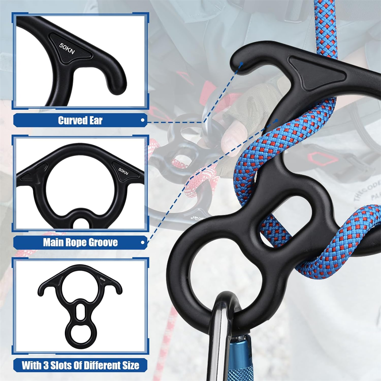 50KN Climbing Descender Large Bent-Ear Belaying & Rappelling Gear Belay Device;