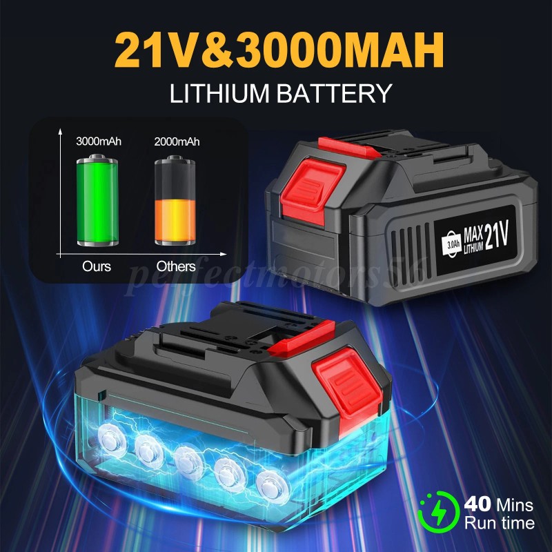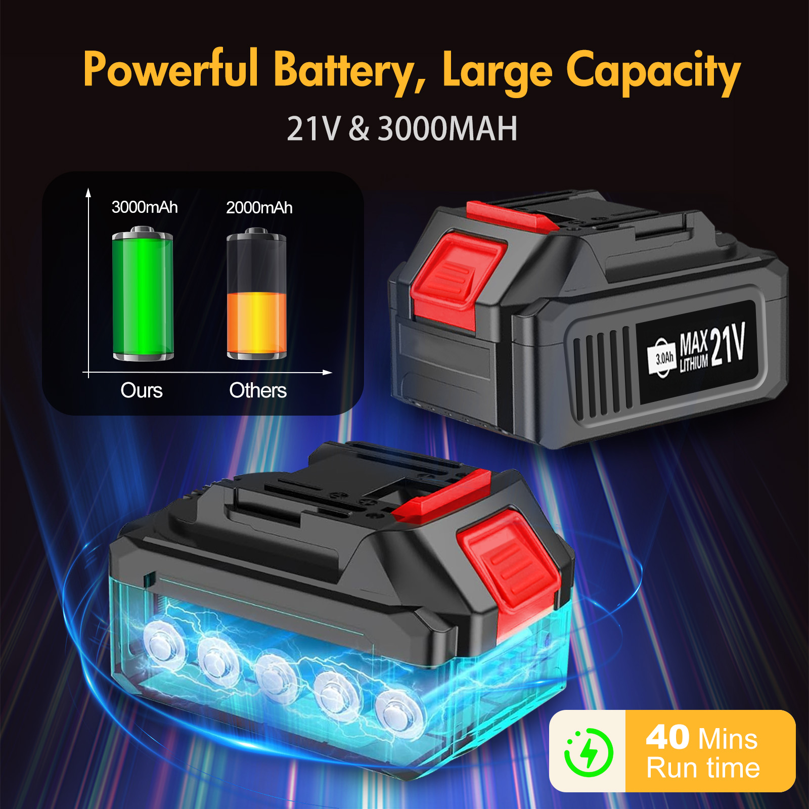 ⭐️【21V High Energy, Worry-Free Operation】Equipped with two removable and rechargeable 3000mAh high-capacity lithium batteries, ensuring ample power. The real-time capacity indicator makes the battery status clear at a glance, keeping you informed during every use.