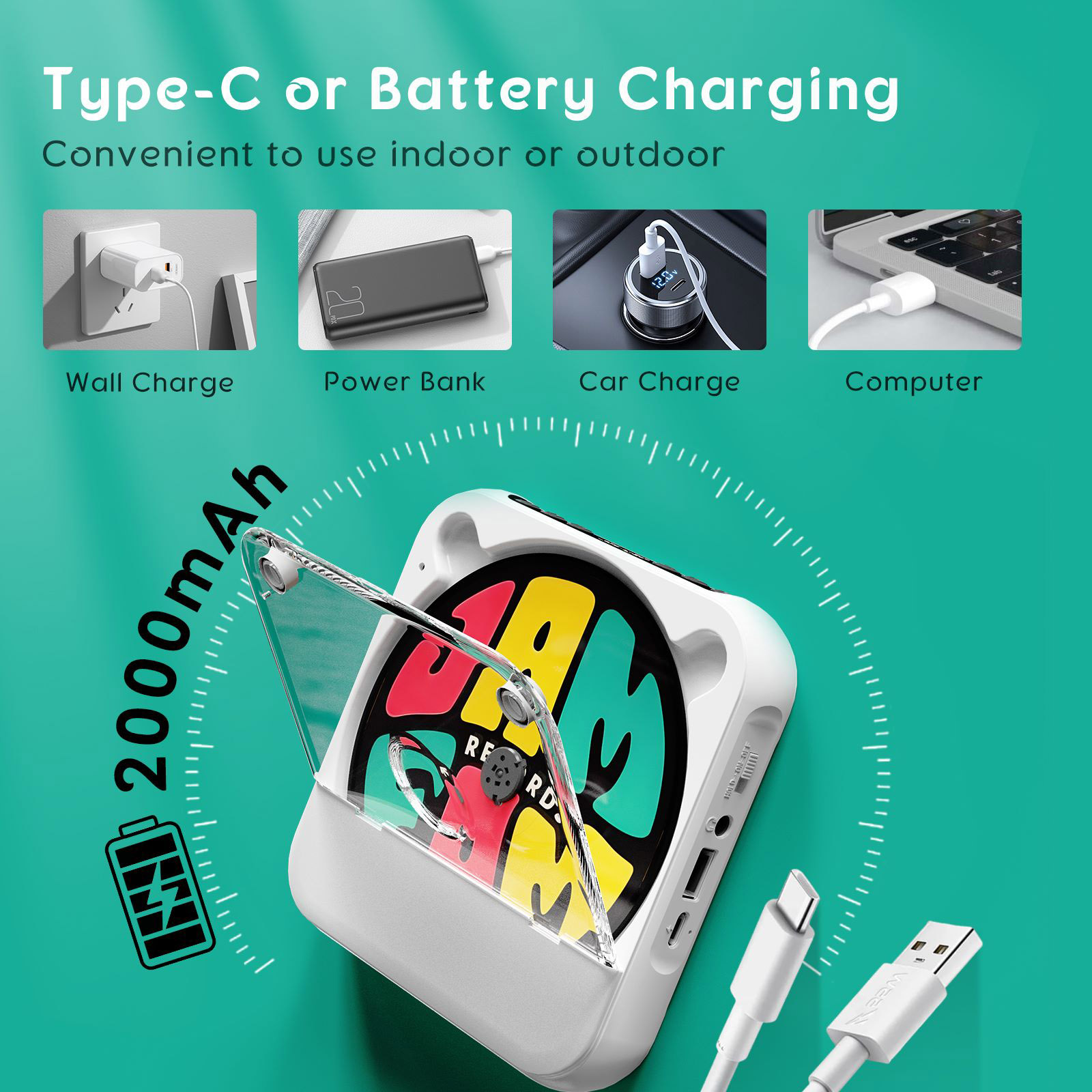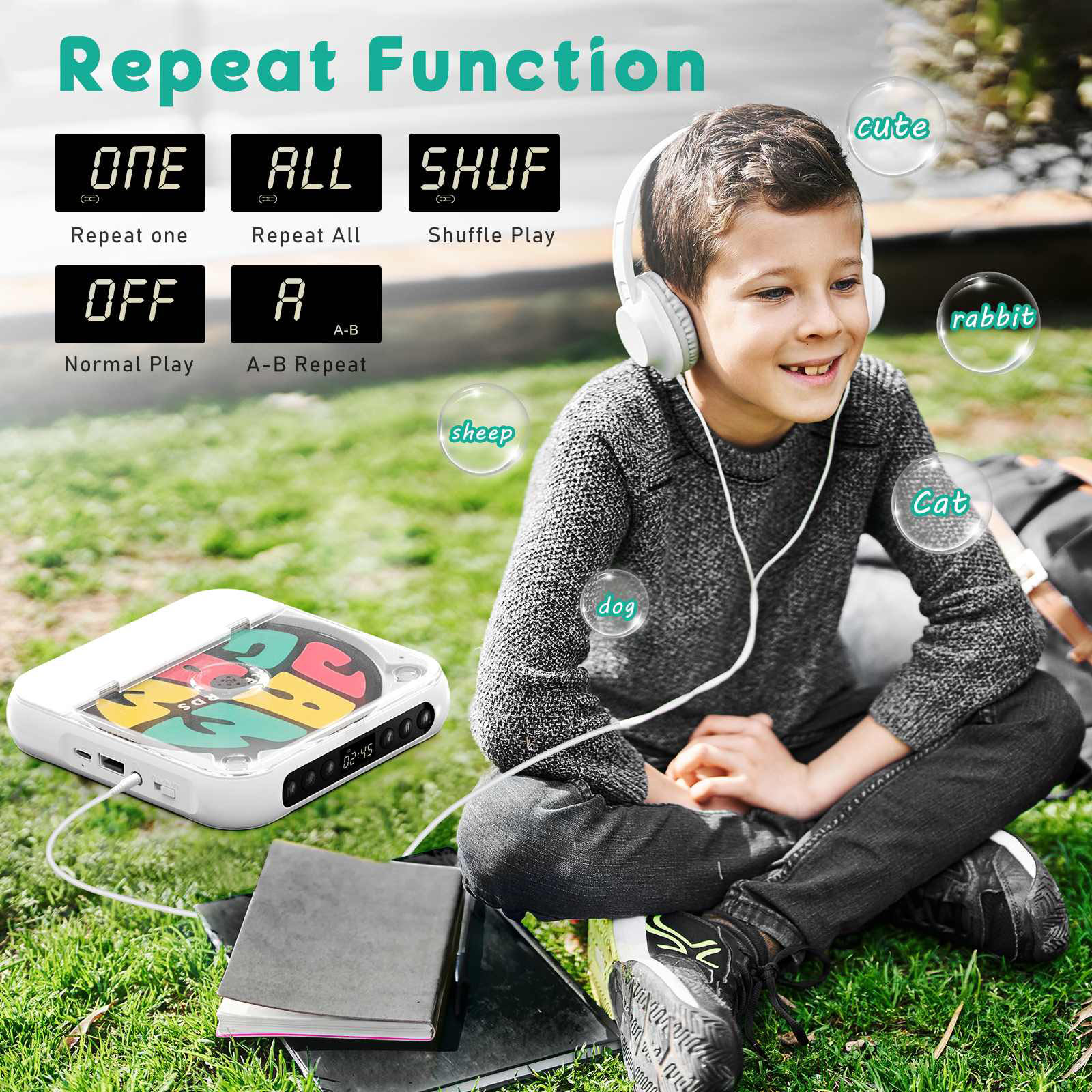Portable and Versatile: Designed with a slim profile and lightweight construction, this player is the perfect companion for your on-the-go needs. Whether you're commuting, exercising, or traveling, it seamlessly integrates into your life, providing uninterrupted learning experiences. Additionally, it supports multiple media formats, including CDs, USB media, and 3.5mm AUX wired audio input, catering to your diverse entertainment needs.