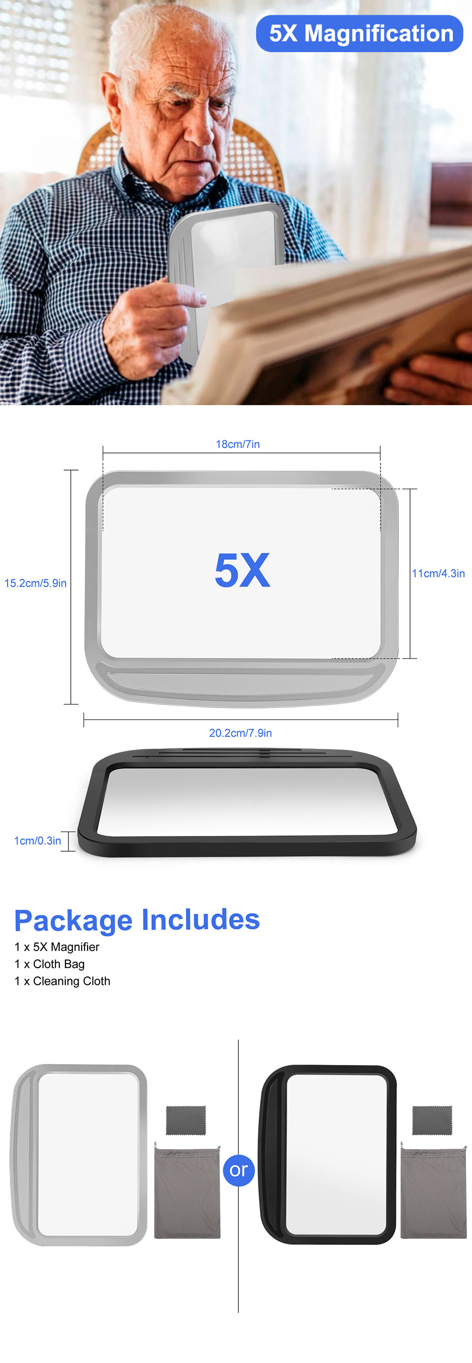 5X Full Page Magnifier Large Handheld Magnifying Glass for Low Visions USA**