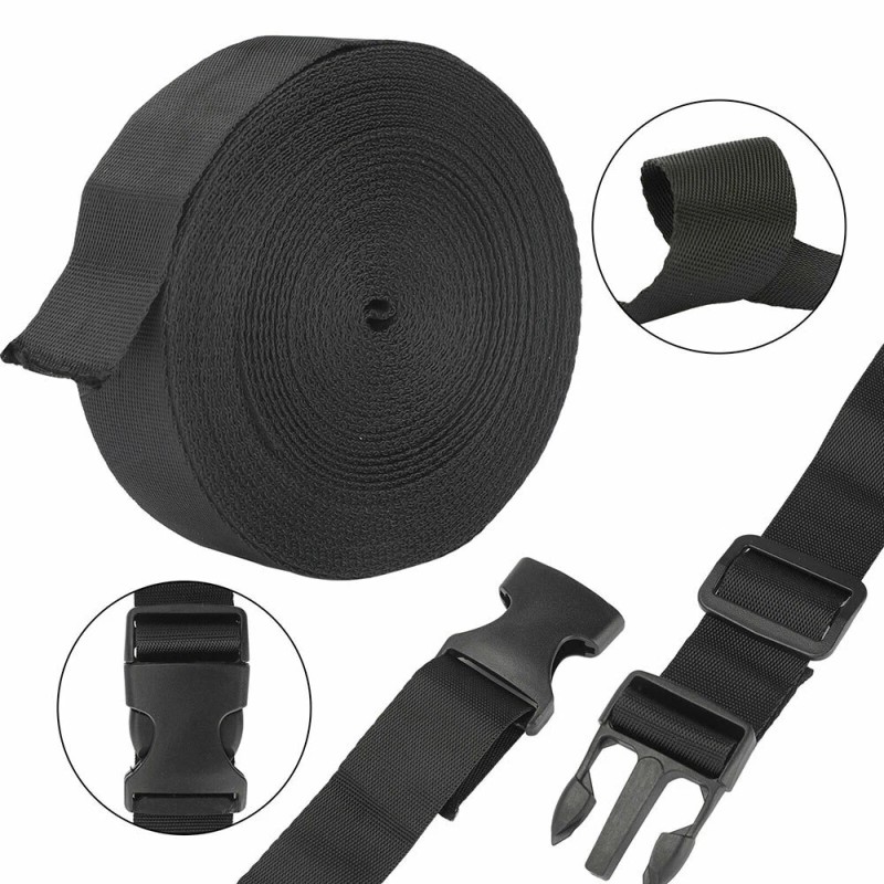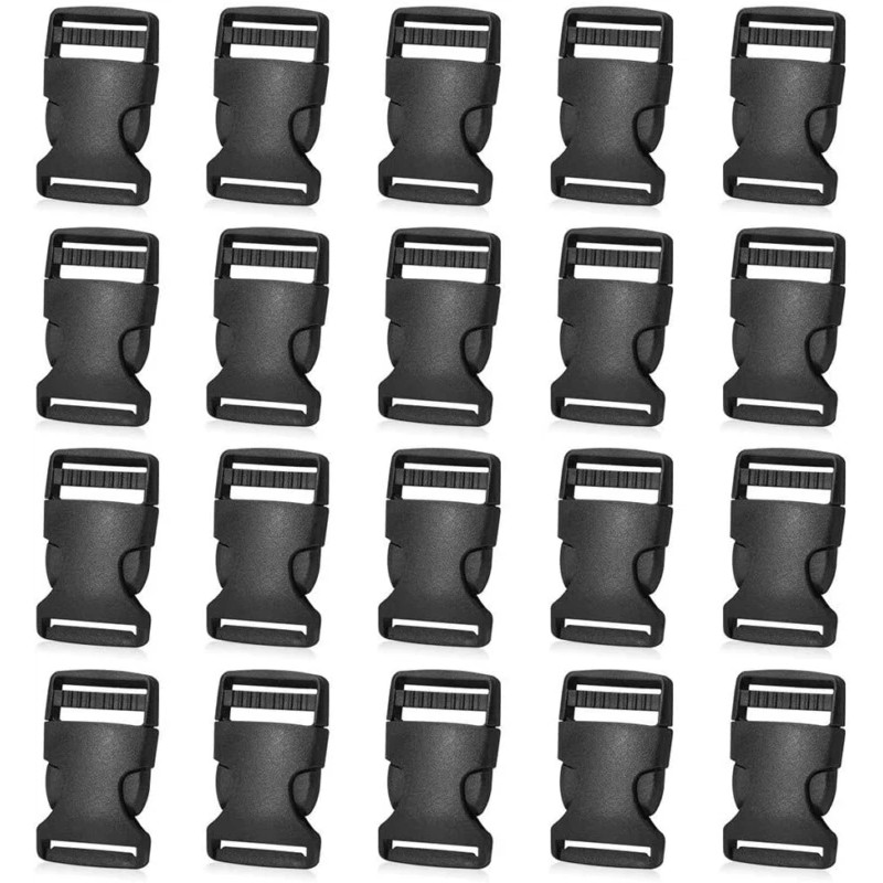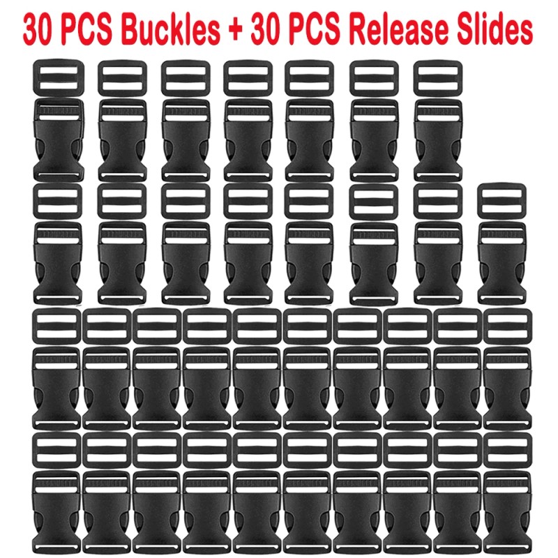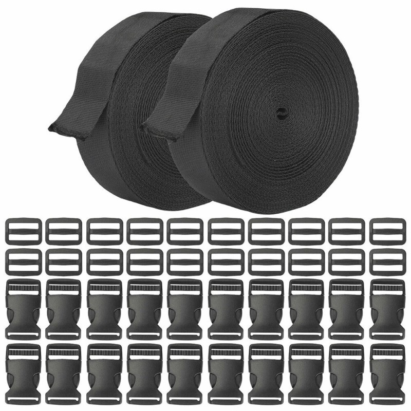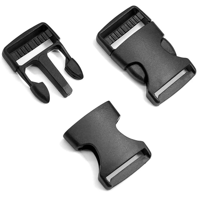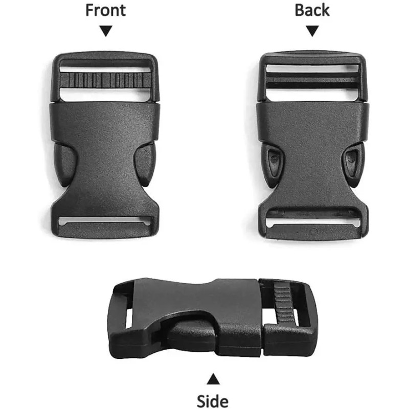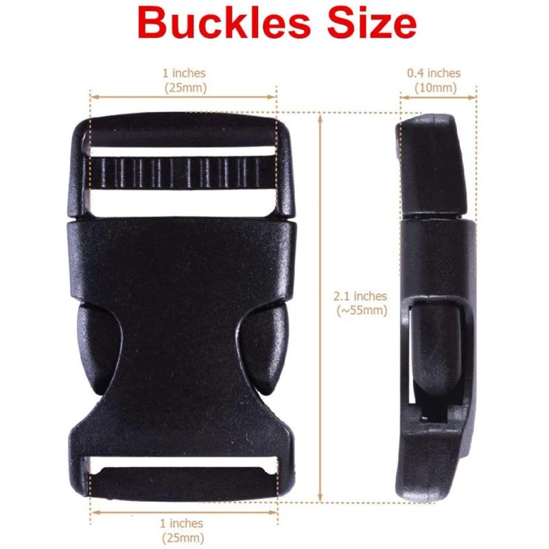 -Plastic Buckles Kit: Include 10pcs side release plastic buckles, 10pcs slide, and 1 roll 11 yards black nylon webbing strap.