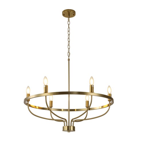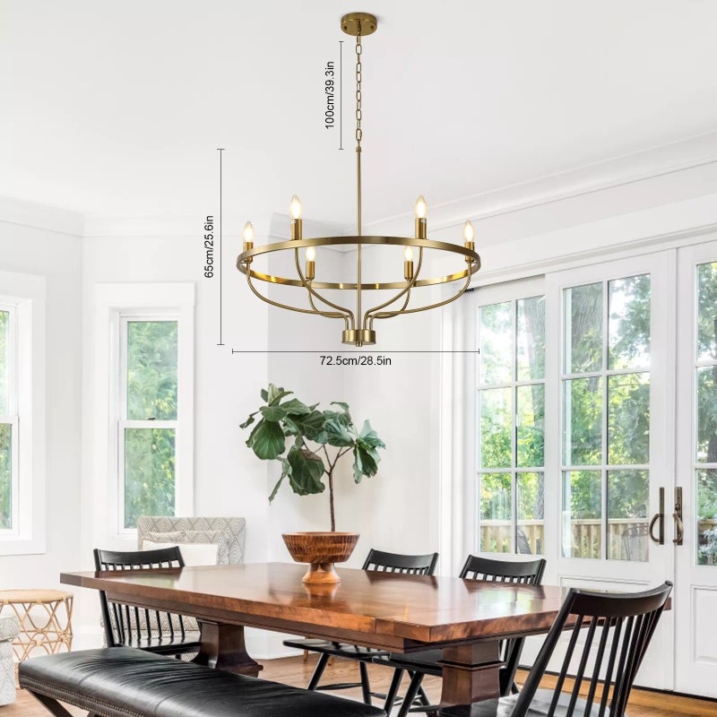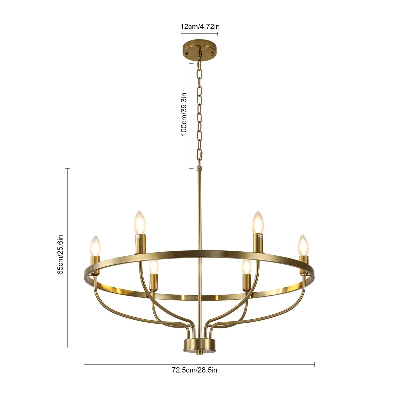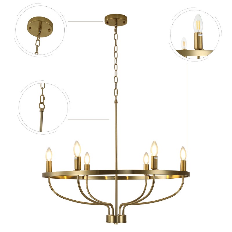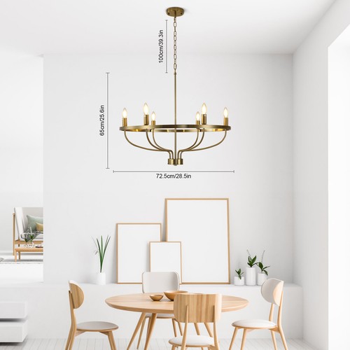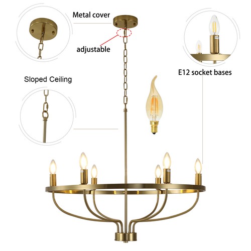 6-Golden Chandelier Vintage Candle Chandelier Dining Room Chandelier Over Table for Bedroom, Living Room,Kitchen,28.54in,E12