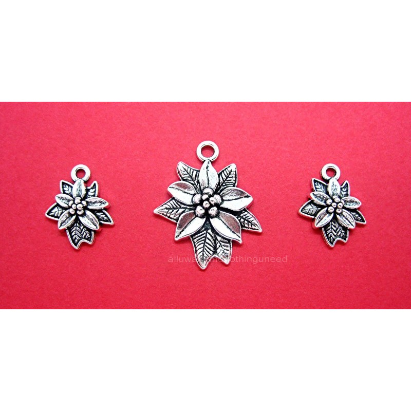 Unbranded 6 pcs ANT SILVERTONE Christmas POINSETTIA SETS Charms Pendants Earrings Crafts