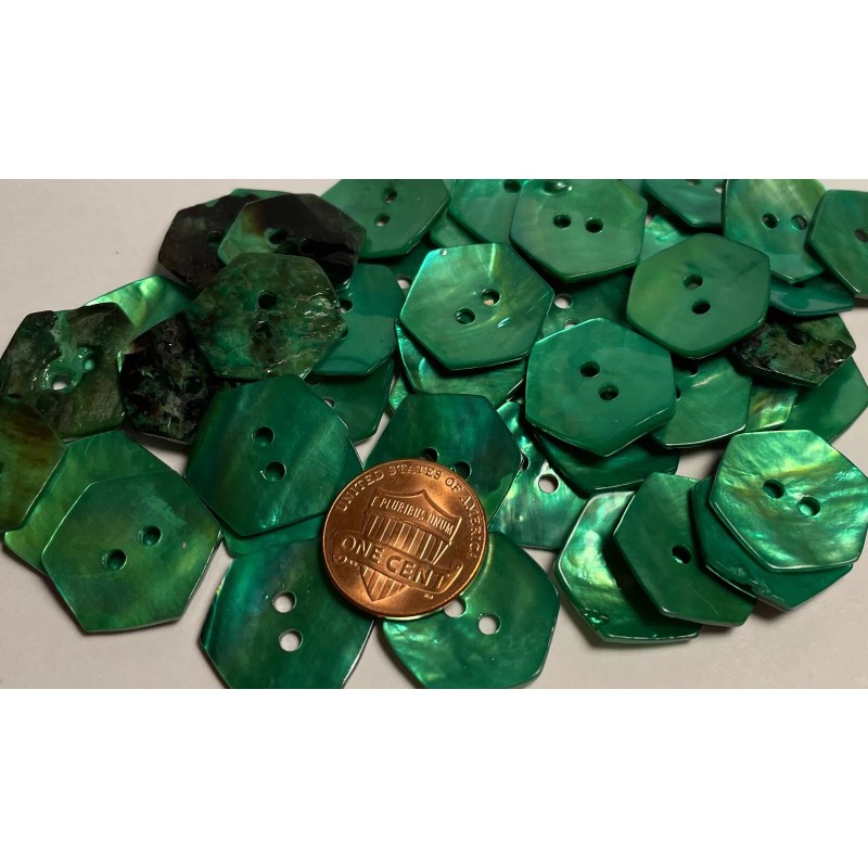 Unbranded 6 PCS ONLY! Dyed Green Hexagon Abalone Shell Sew-thru Buttons 18mm 11/16 13551