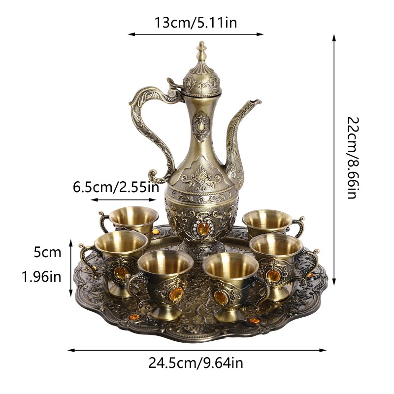 7.44oz Teapot & Six Teacups Vintage Tea Set for Serving Tea , Coffee, Wine,