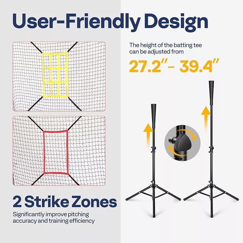 Unbranded 7x7 ft Baseball Softball Hitting Net w/ Large Ball Collection System for Batting