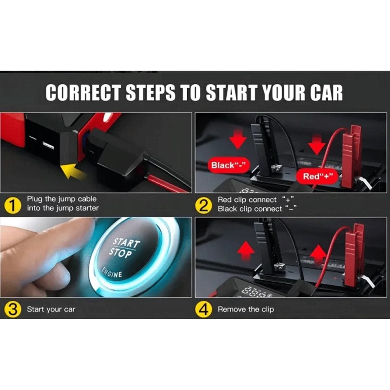 - PROTABLE POWER BANK: The car battery starter capacity is very large and can charge for phone, laptop, camera and all USB digital devices. Apart from that, charging is very fast and it is very convenient to use, just long press the power button and plug in the USB data cable.