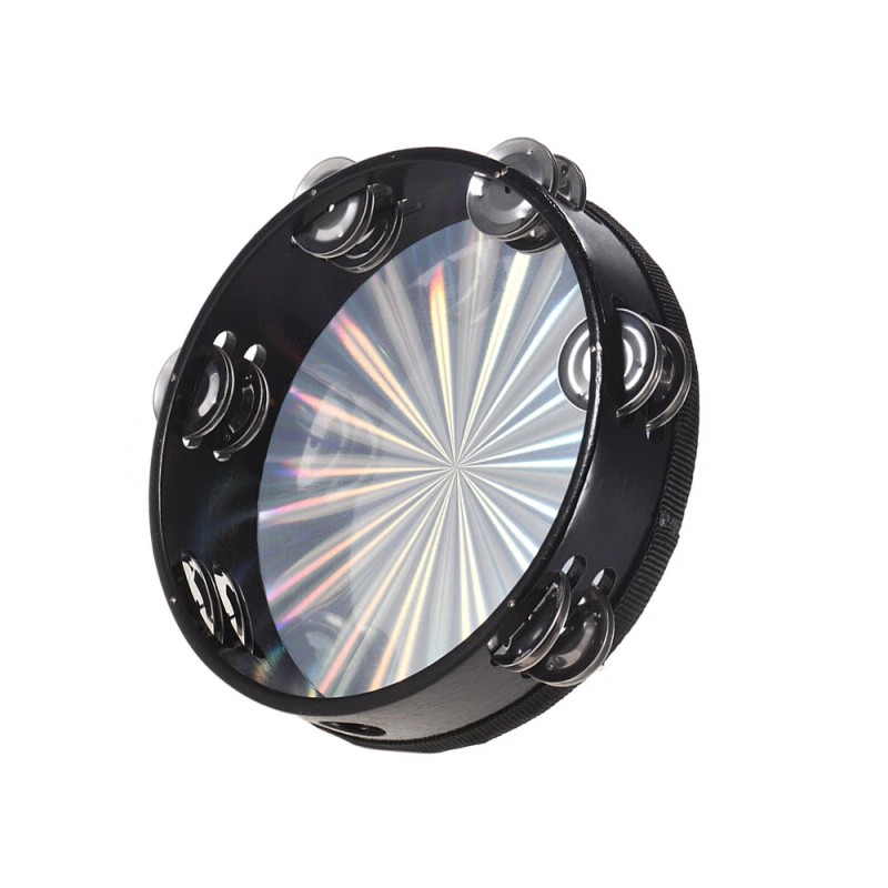 Unbranded 8 Inch Wooden Tambourine Handbell Hand Drum with Double Row Jingles Instrument