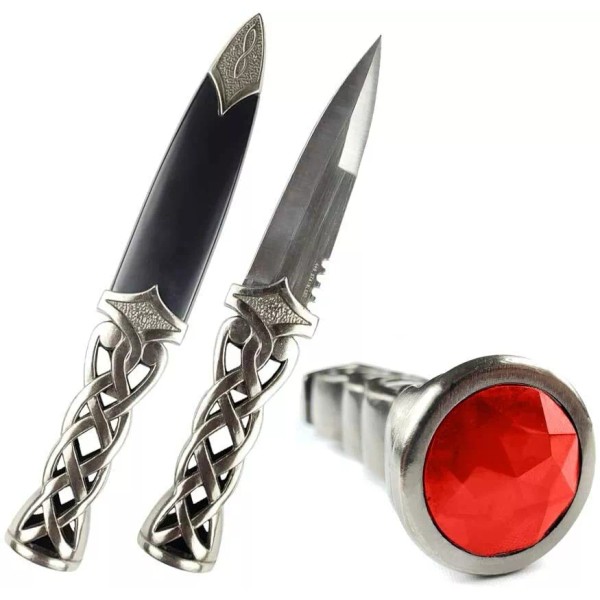 Unbranded 9" MEDIEVAL SCOTTISH WEDDING HIGHLAND CELTIC SGIAN DUBH KNIFE DAGGER & SCABBARD - Red