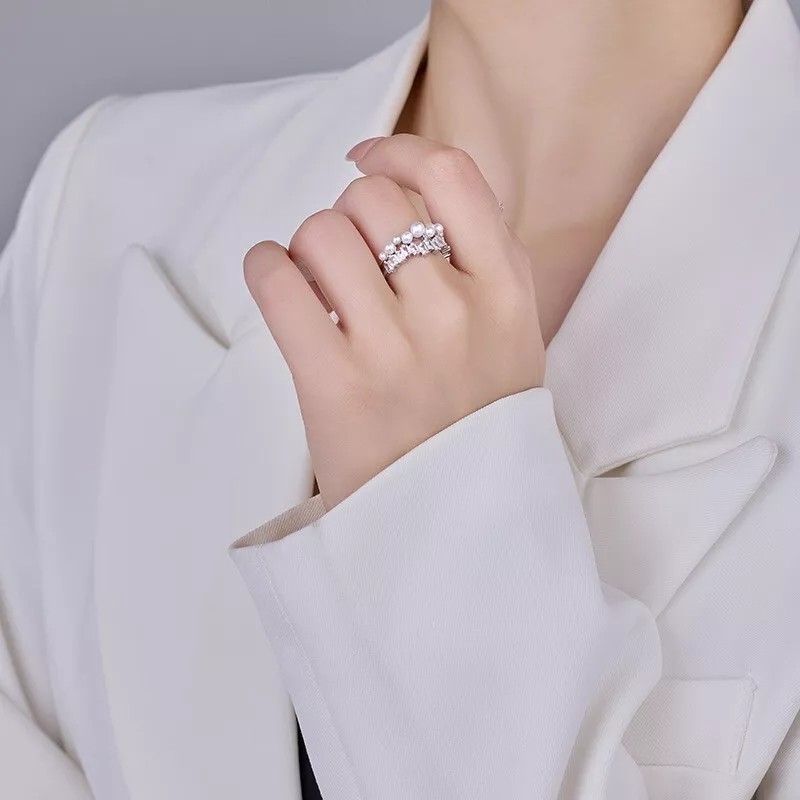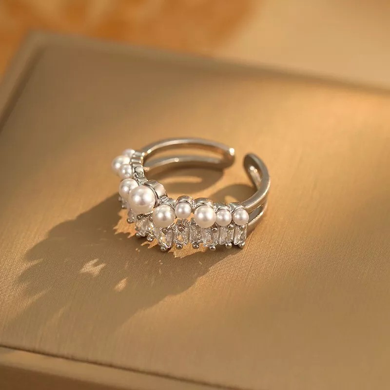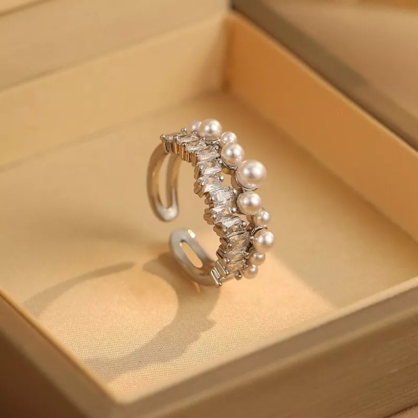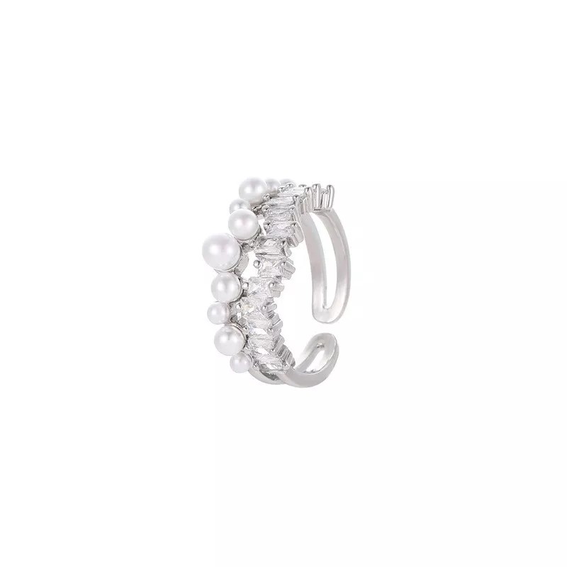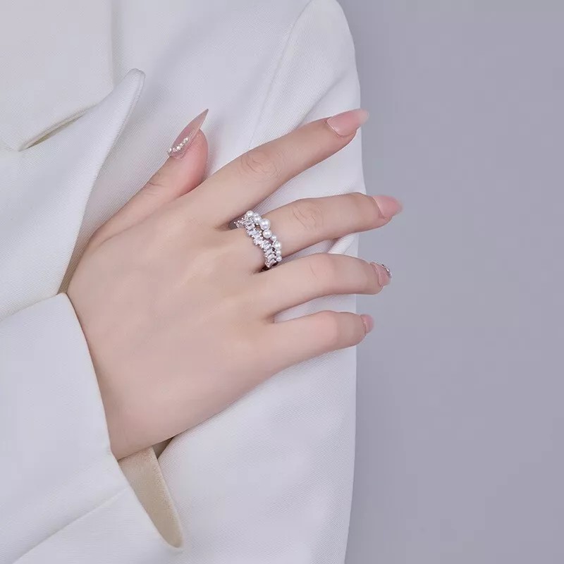 Unbranded 925 Sterling Silver French Style Pearl Cubic Zirconia Ring
