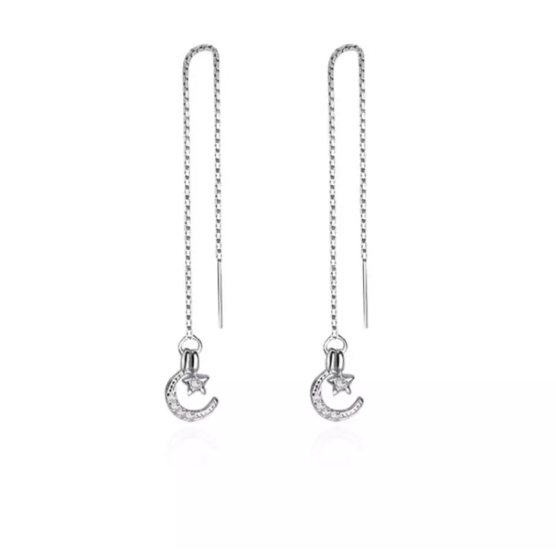 Unbranded 925 Sterling Silver Plated Moon Star CZ Ear Thread Through Threader Earrings C9