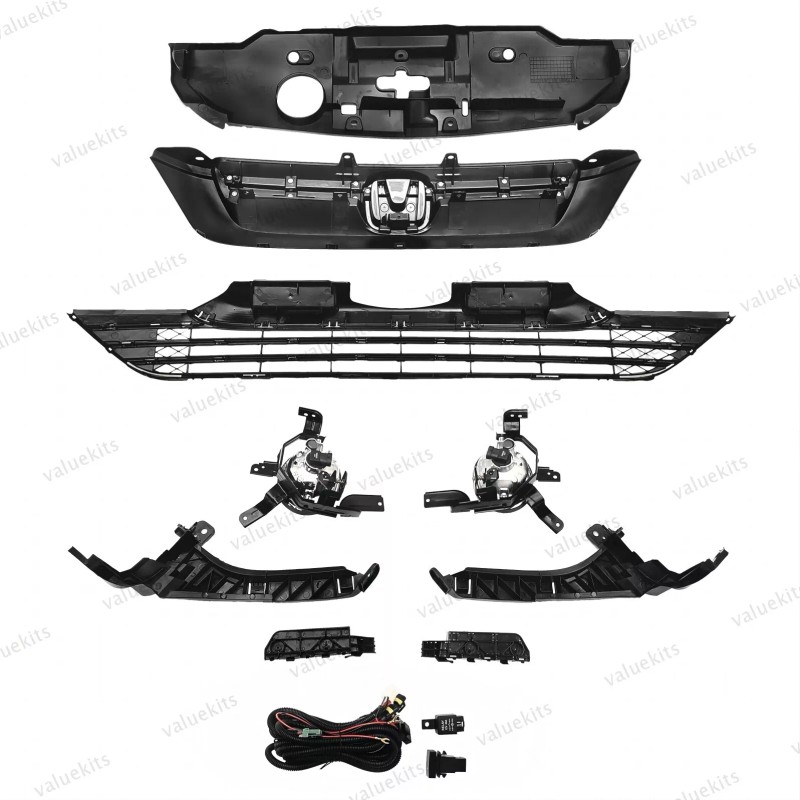 Unbranded 9PC For CR-V 2007-09 Radiator Cover Upper Lower Chrome Grille Mesh Fog light Kit