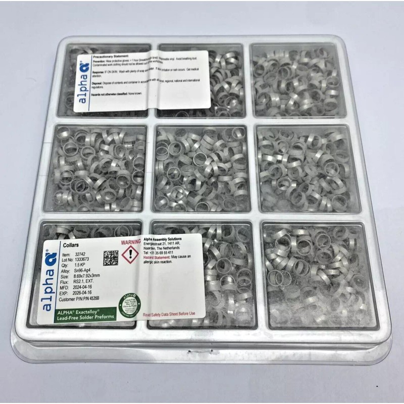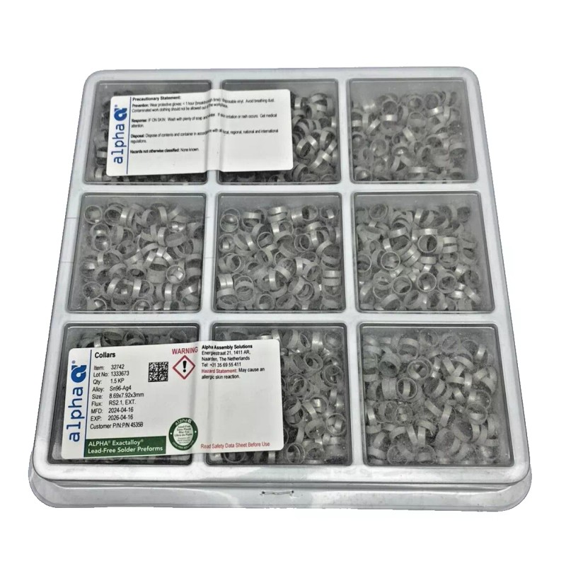 Unbranded ALPHA Exactalloy Sn96-Ag4 Solder Preforms Collars 8.69x7.92x3mm, Flux RS2.1