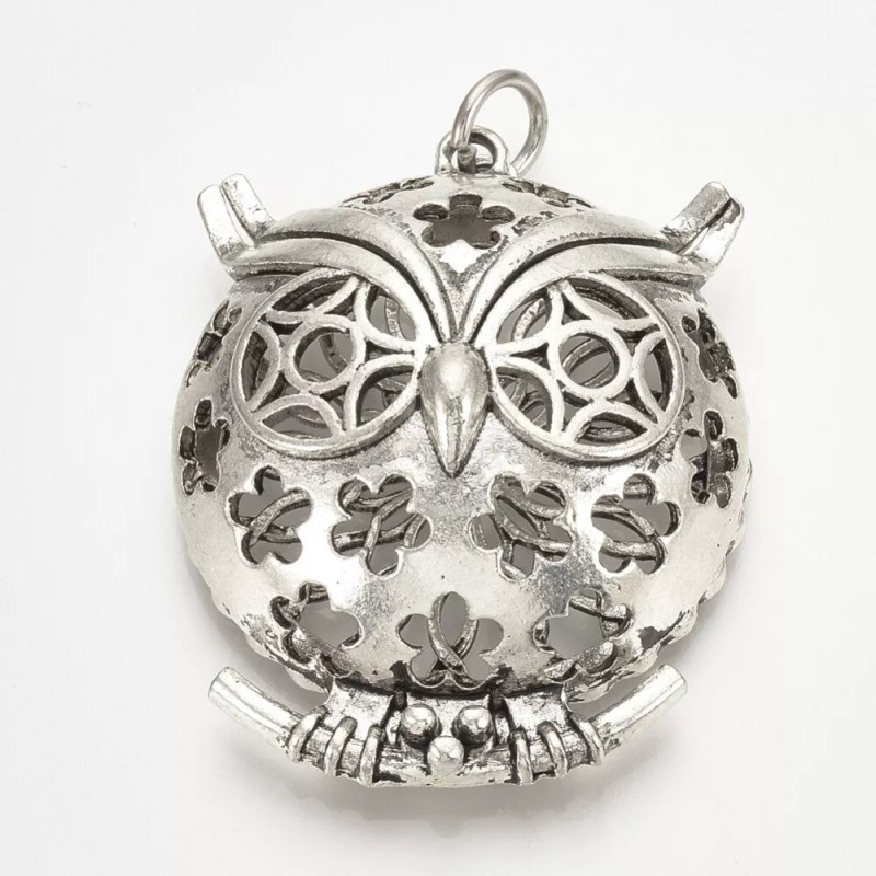 Brass Magnetic Diffuser Locket Pendants Cage Pendants Hollow Owl Antique Silver Color