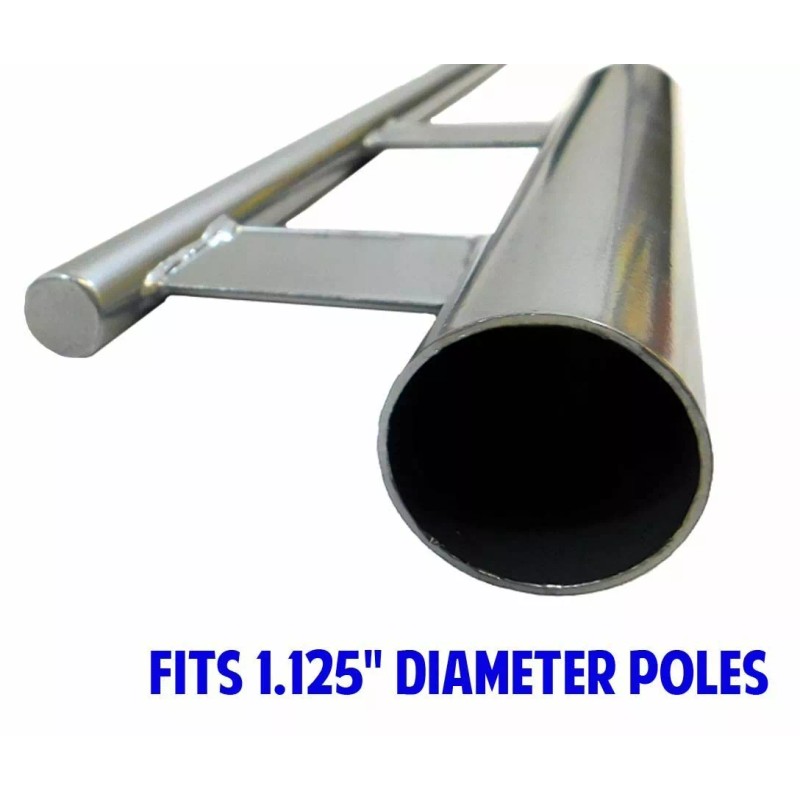 Pole is 16ft tall and breaks down to 5 pieces (4 straight, 1 curved). Base Diameter 1.125in.