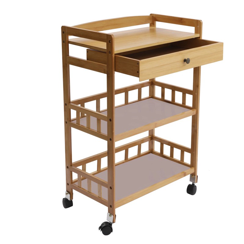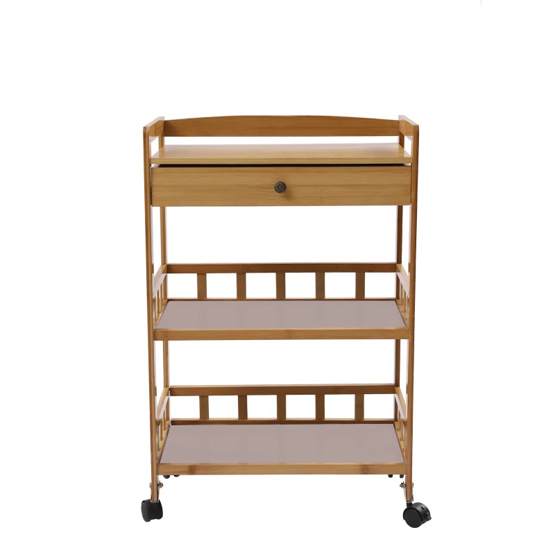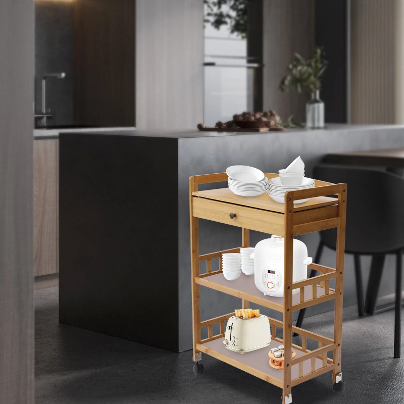 Bamboo Home Rolling Kitchen Trolley W/ Storage Drawer Stand 3 Tiers Shelves Cart