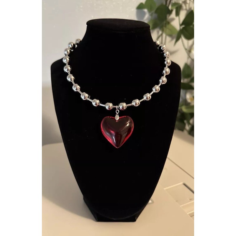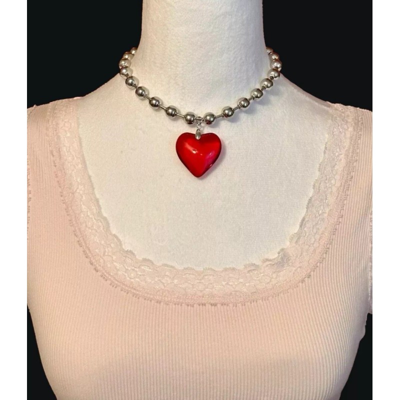 #Y2K#90’s#red heart #crystal heart #women necklace