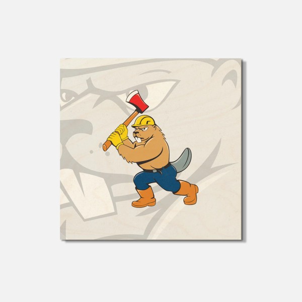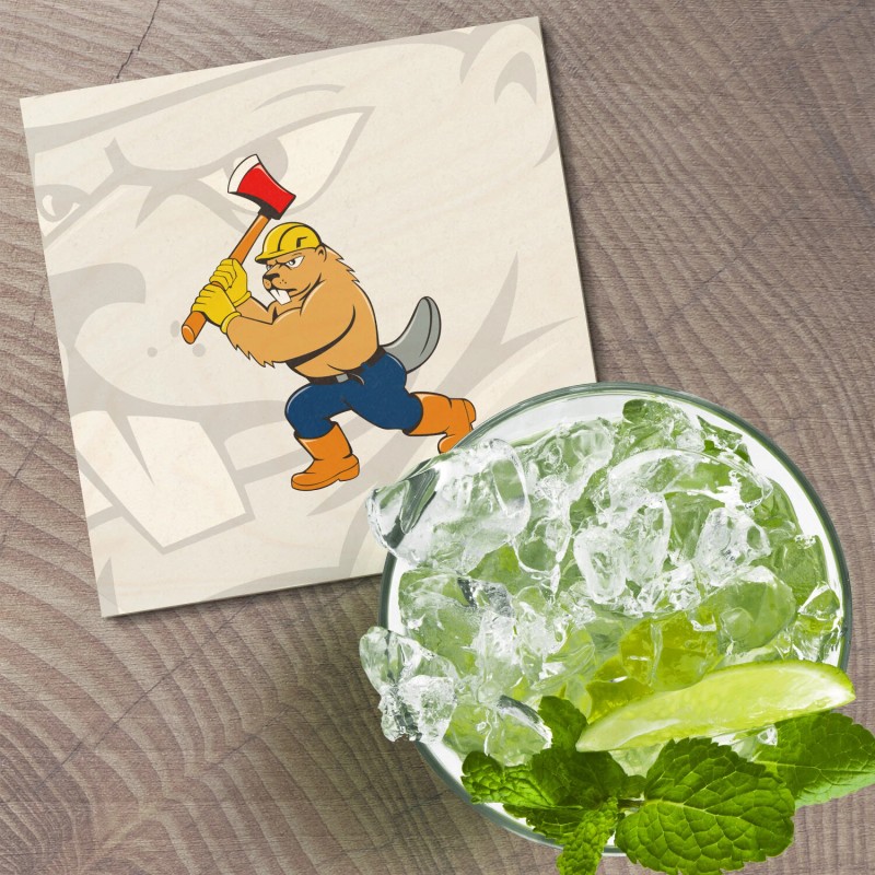 Unbranded Beaver Lumberjack Animal 4'' X 4'' Square Wooden Coaster