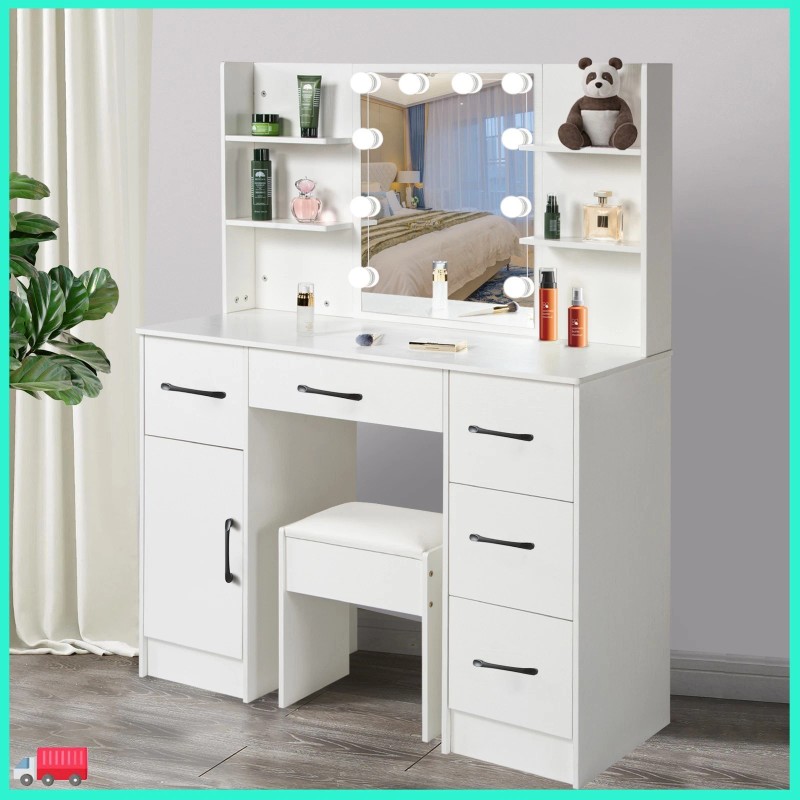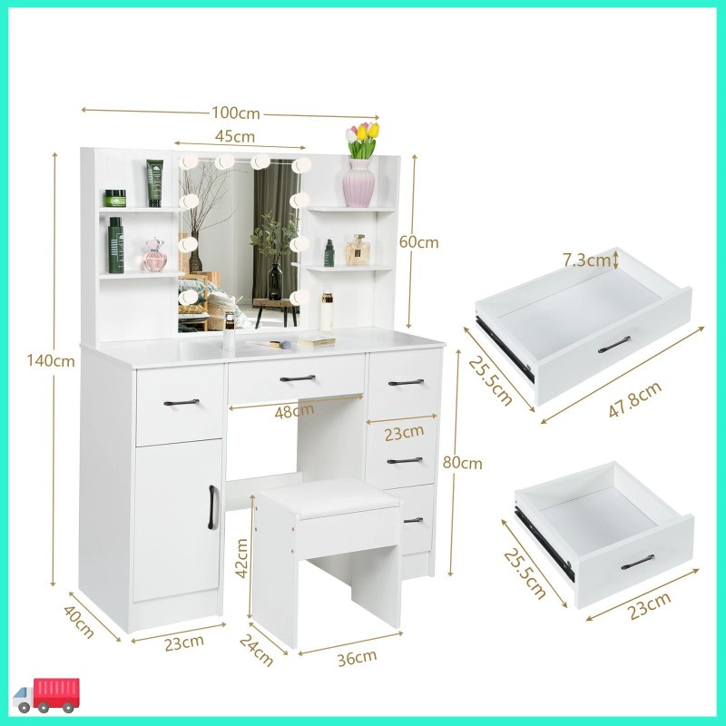 - Features: Stool Included, With Drawers, With Stool, With Mirror, With Cupboard