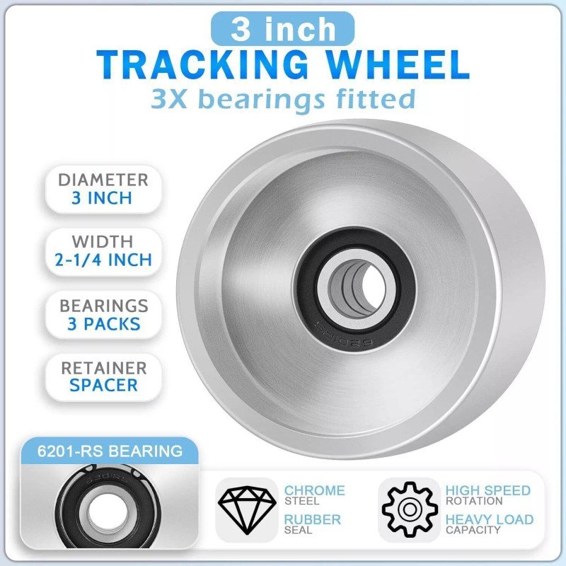 Great Features -- Each wheel has 3 x heavy duty 6201RS bearings (inner diameter 12mm) fitted inner back and has spacers between the bearings to relieve over-tightening for max bearings life. They are easy to assemble and use, designed non-slip finish ensuring the belt does not jump off the wheel.