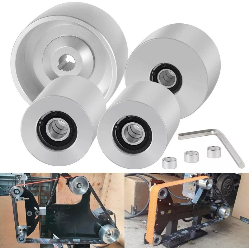 3) Each wheel has 3 x heavy duty 6201RS bearings (inner diameter 12mm) fitted inner back and has spacers between the bearings to relieve over-tightening for max bearings life. They are easy to assemble and use, designed non-slip finish ensuring the belt does not jump off the wheel