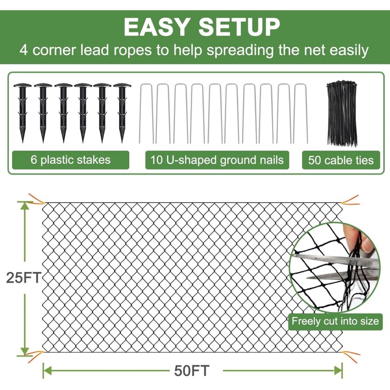 - 🌱🌱MULTIFUNTION NET - The netting is not only used as an orchard net for protecting your fruit/trees/crops from intruding birds, squirrels, deer and other pests, but also can be used as chicken netting. Create a strong barrier against unwanted visitors to meet all your need
