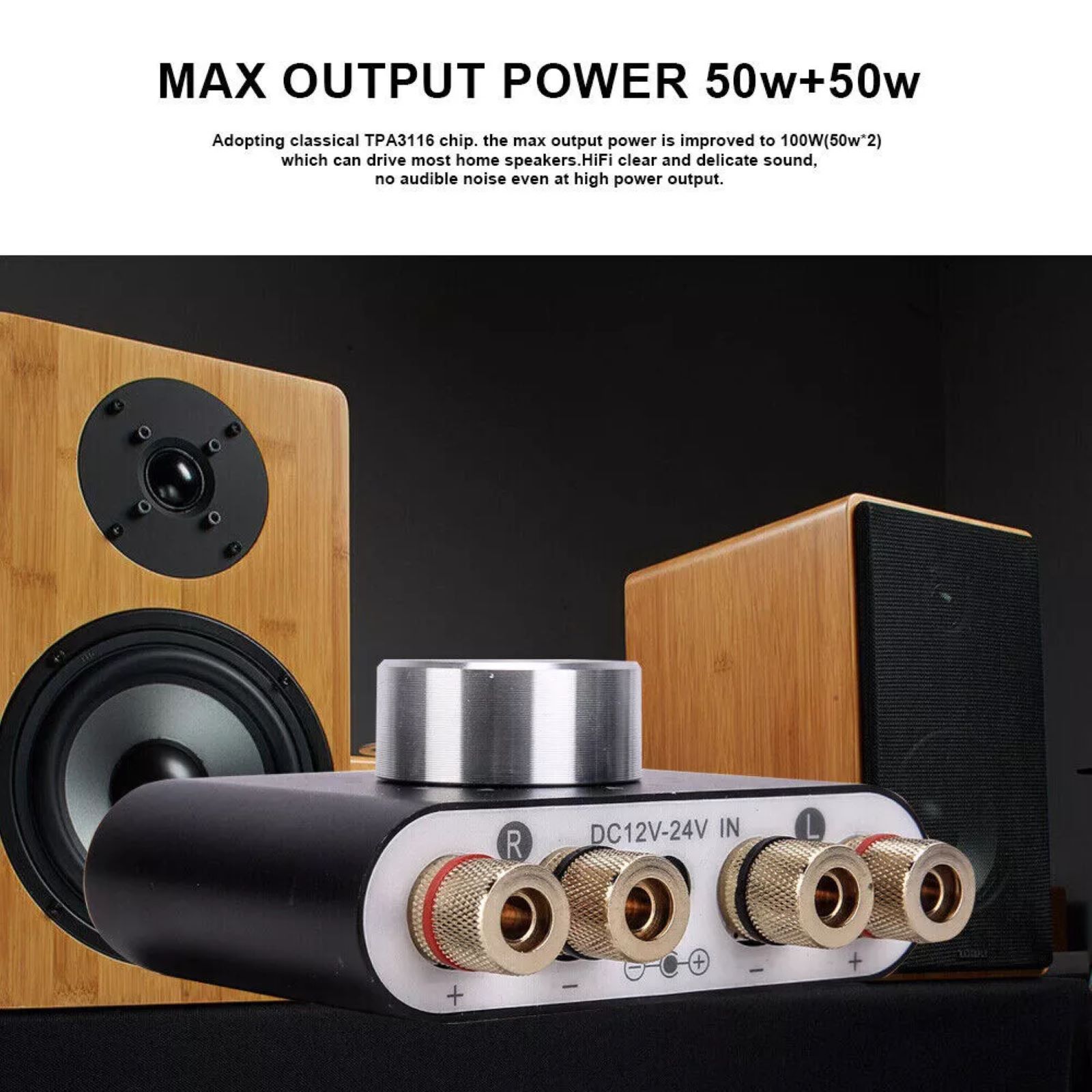 Unbranded Black Mini Bluetooth 5.0 Digital Power Amplifier HiFi Stereo Audio 50W+50W