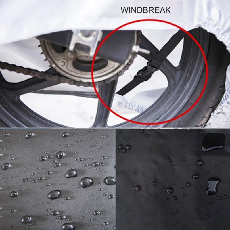 Durable Material, Cover Vents, Elastic Hem, Buckles to keep your Motorcycle Water Resistance & Windproof.