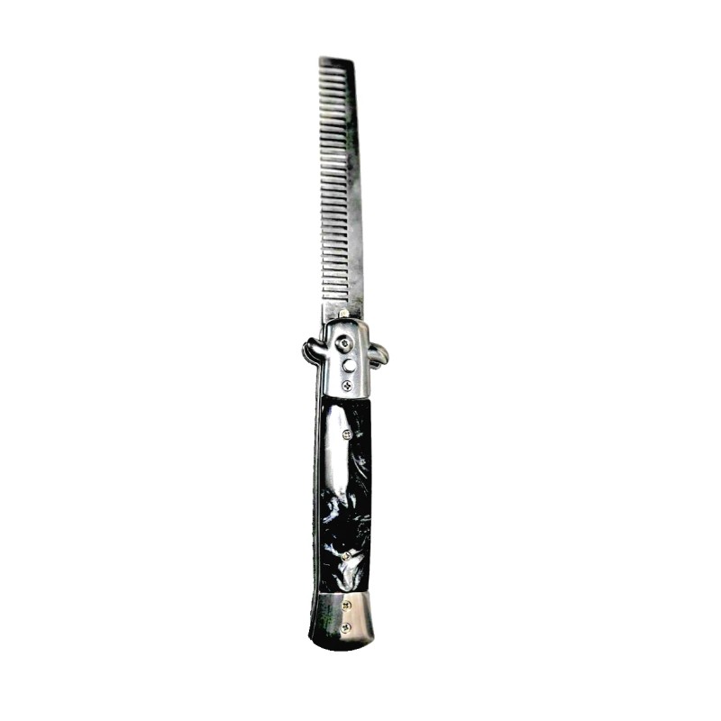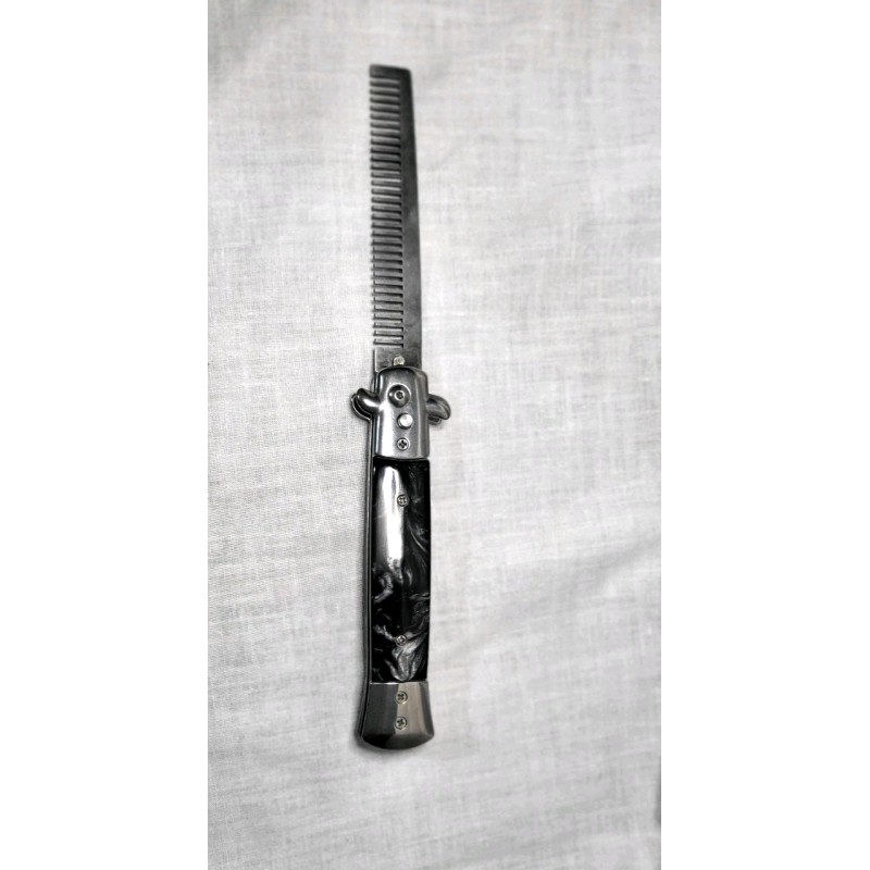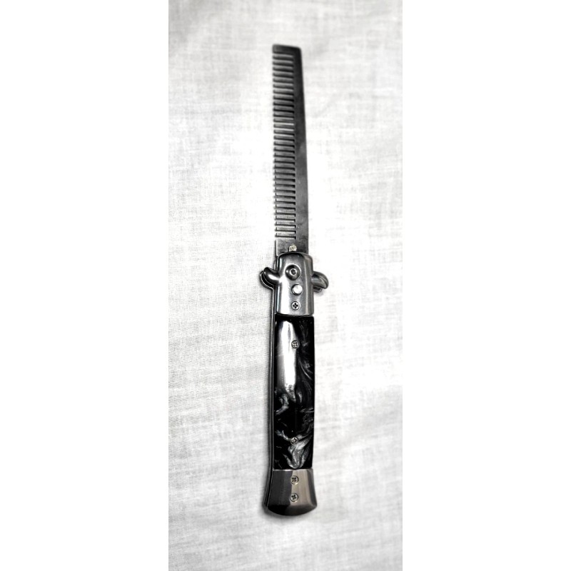 Unbranded Black Resin Handle, Spring-Loaded, Stainless Steel Pocket Sized, Hair Comb