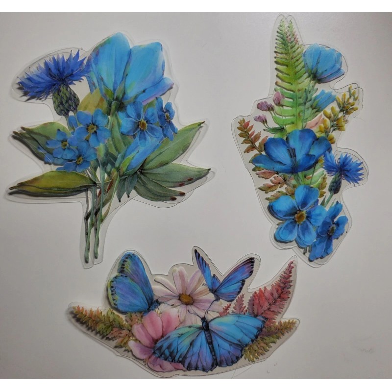 Blue and Pink Floral Stickers- 30 stickers- 2 ea of 15 images.